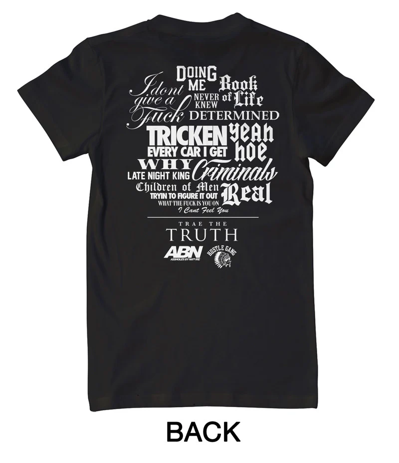 - "TRUTH" T-Shirt w/ Trae illustration on front + stylized tracklisting on the back